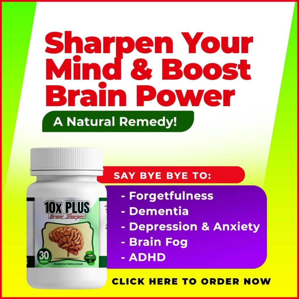 Brain Sharper Capsules (10x Plus) is a powerful herbal product designed to boost memory, clear brain fog, and keep the brain healthy for both children and adults. It fights forgetfulness, dementia, depression, anxiety, and ADHD, helping your loved ones stay sharp, focused, and happy.